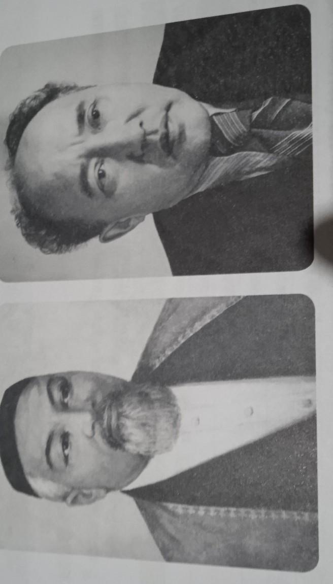 1) Суретте Абай Құнанбаев және Мұхтар Әуезов бейнеленген