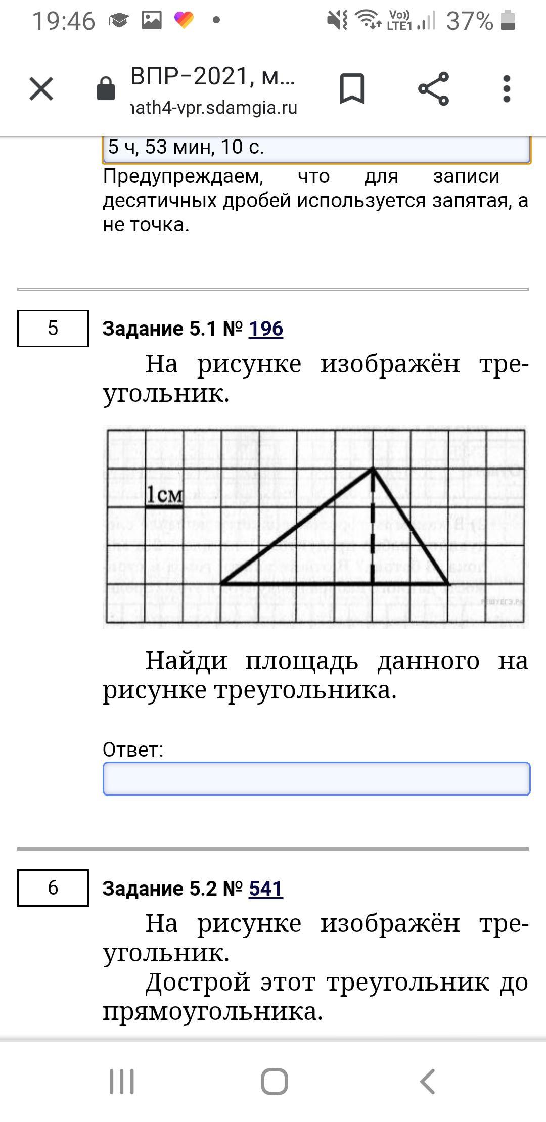 На рисунке изображён треугольник. Найдите площадь данного прямоугольника