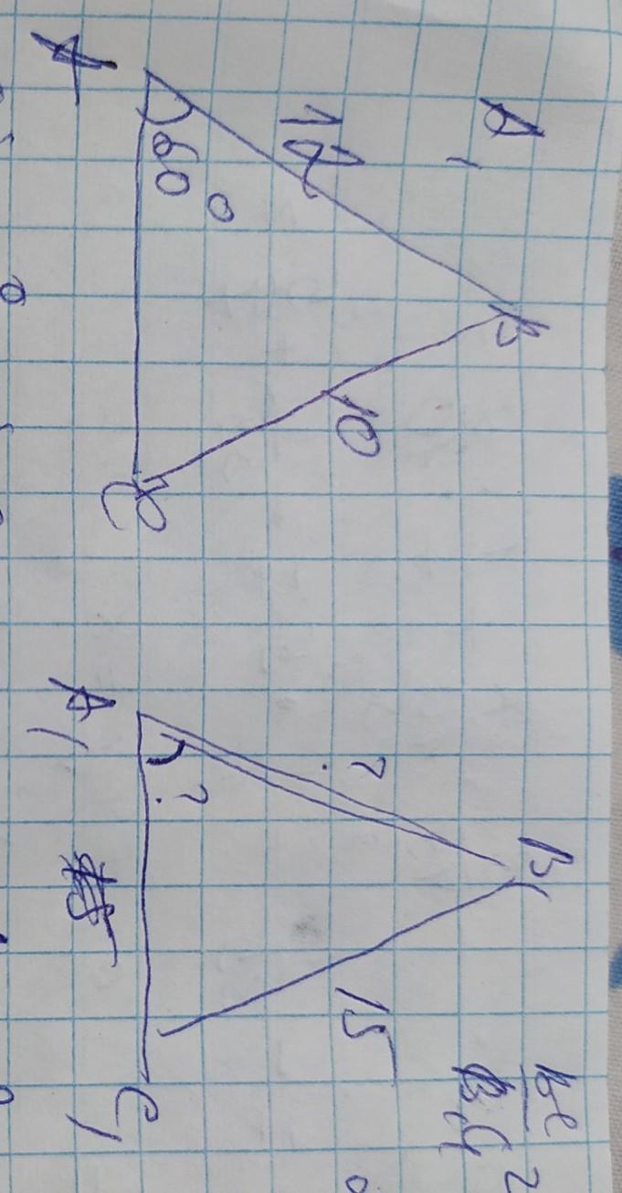 Если треугольники подобны, то коэффициент подобия каждого из сторон будет одинаковым, а соответствующие углы равны, поэтому <А=<А1=60°. Вычислим коэффициент с помощью сторон АВ и А11В1: