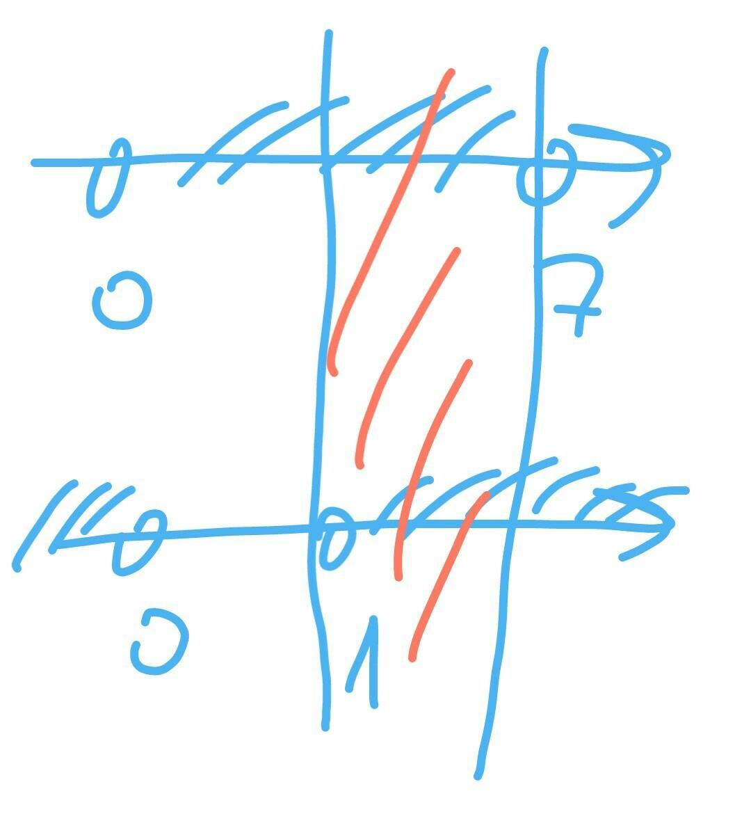 Рисуем 2 оси Х и отмечаем точки 0;7 и 0;1