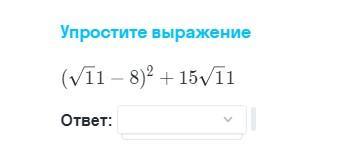 (\sqrt{11} -8)^{2}+15\sqrt{11}=(\sqrt{11})^{2}-2*\sqrt{11}*8+8^{2}+15\sqrt{11}=\\=11-16\sqrt{11}+64+15\sqrt{11}= 75-\sqrt{11}