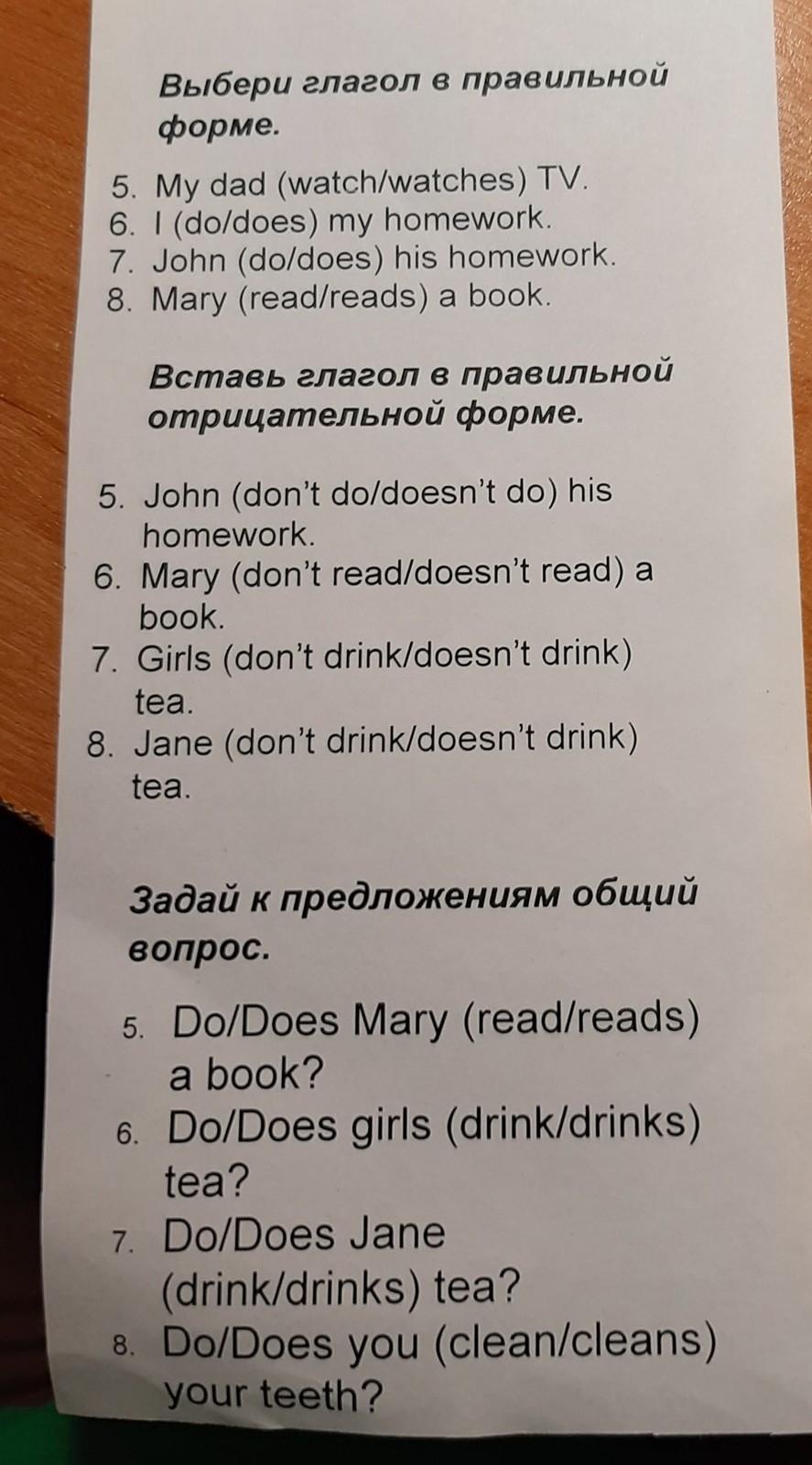 Глагол в правильной форме: