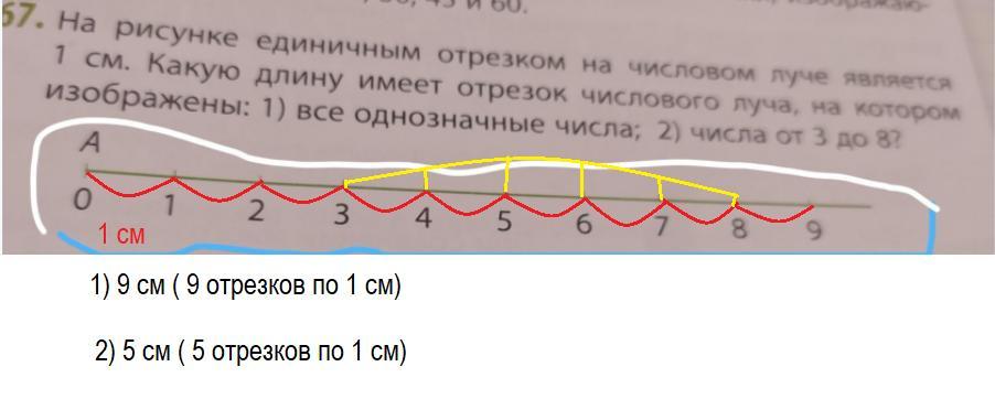 1 см. Какую длину имеет отрезок числового луча, на котором