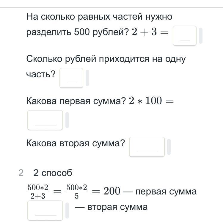 500*2/(2+3) =500*2/5=200- первая сумма.