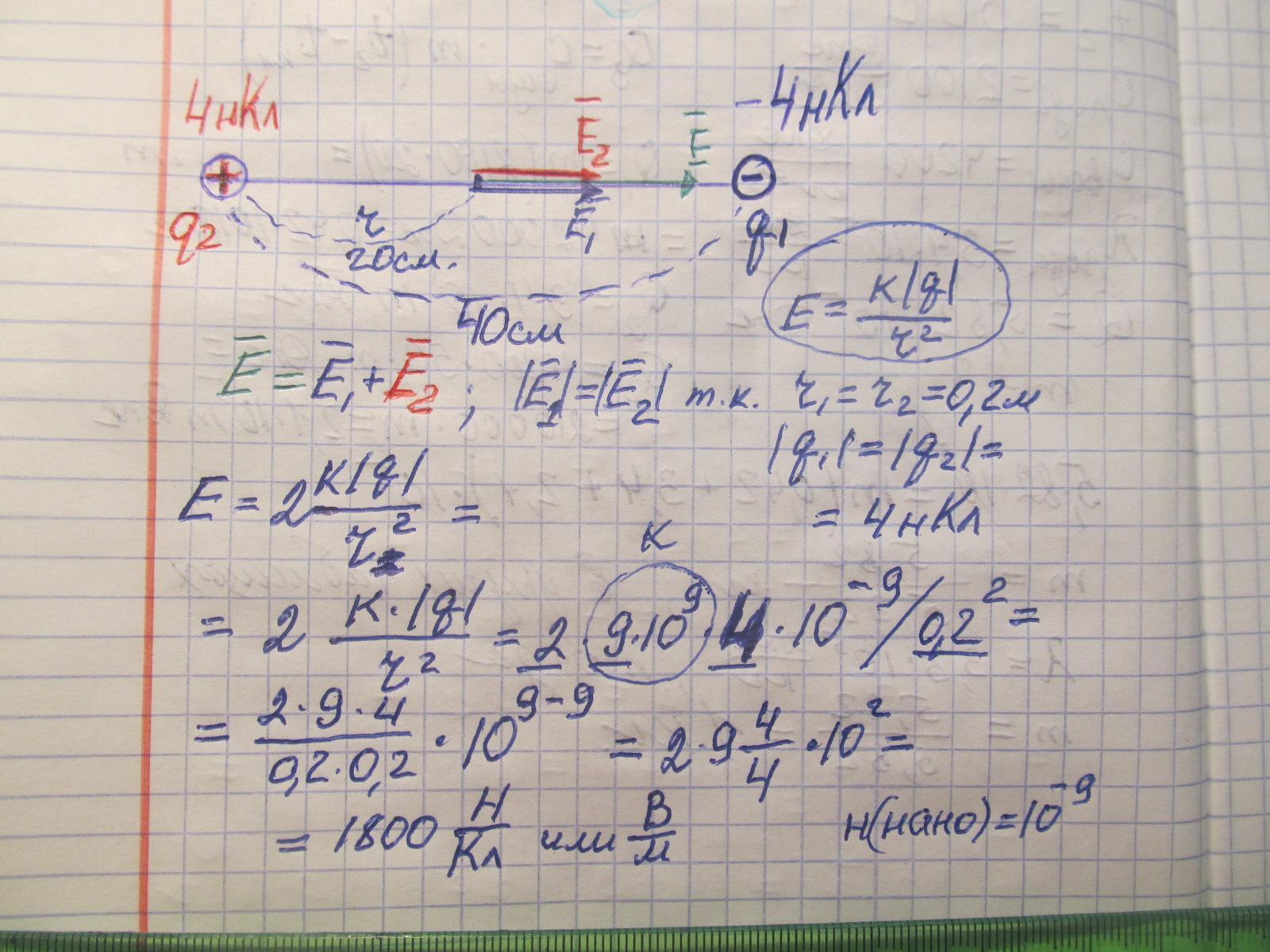 Тела с зарядом 4 нКл и -4 нКл расположены на расстоянии 0,4 м друг от друга. Определите напряжение в точке на расстоянии 20 см от первого заряда вне тел вдоль линии, соединяющей два тела. Изобразите направление вектора E1, E2 и конечного E в рассматриваемой точке (k = 9 × 10 ^ 9H × m ^ 2 / Cl ^ 2) Желательно сфотать Спасибо