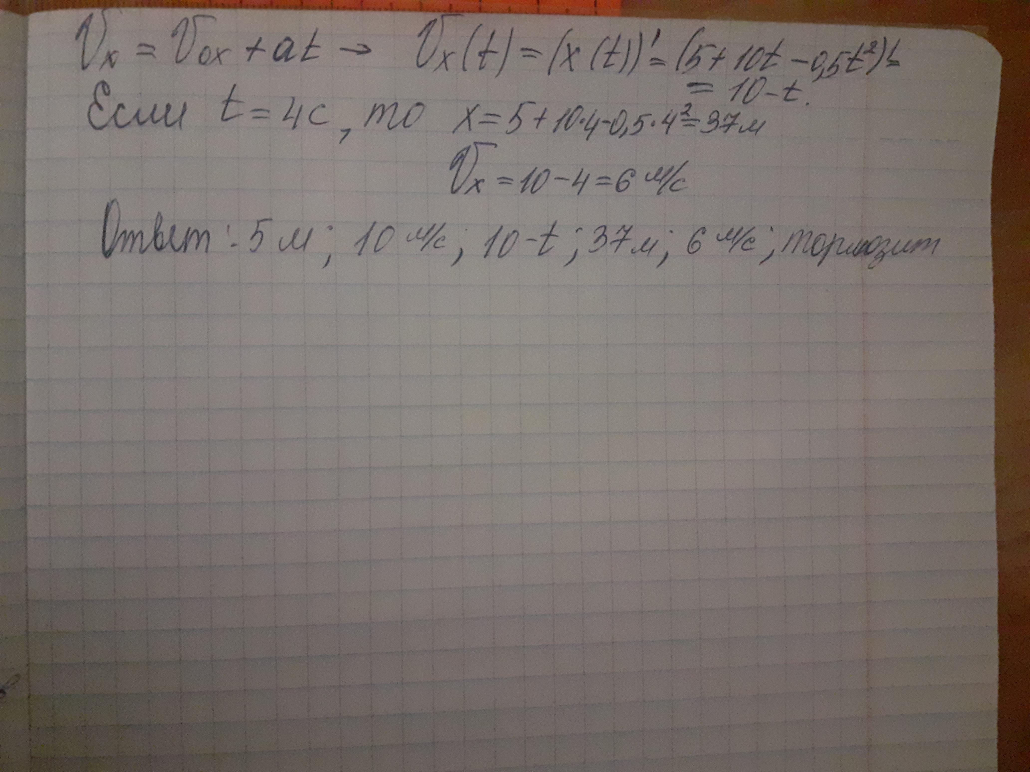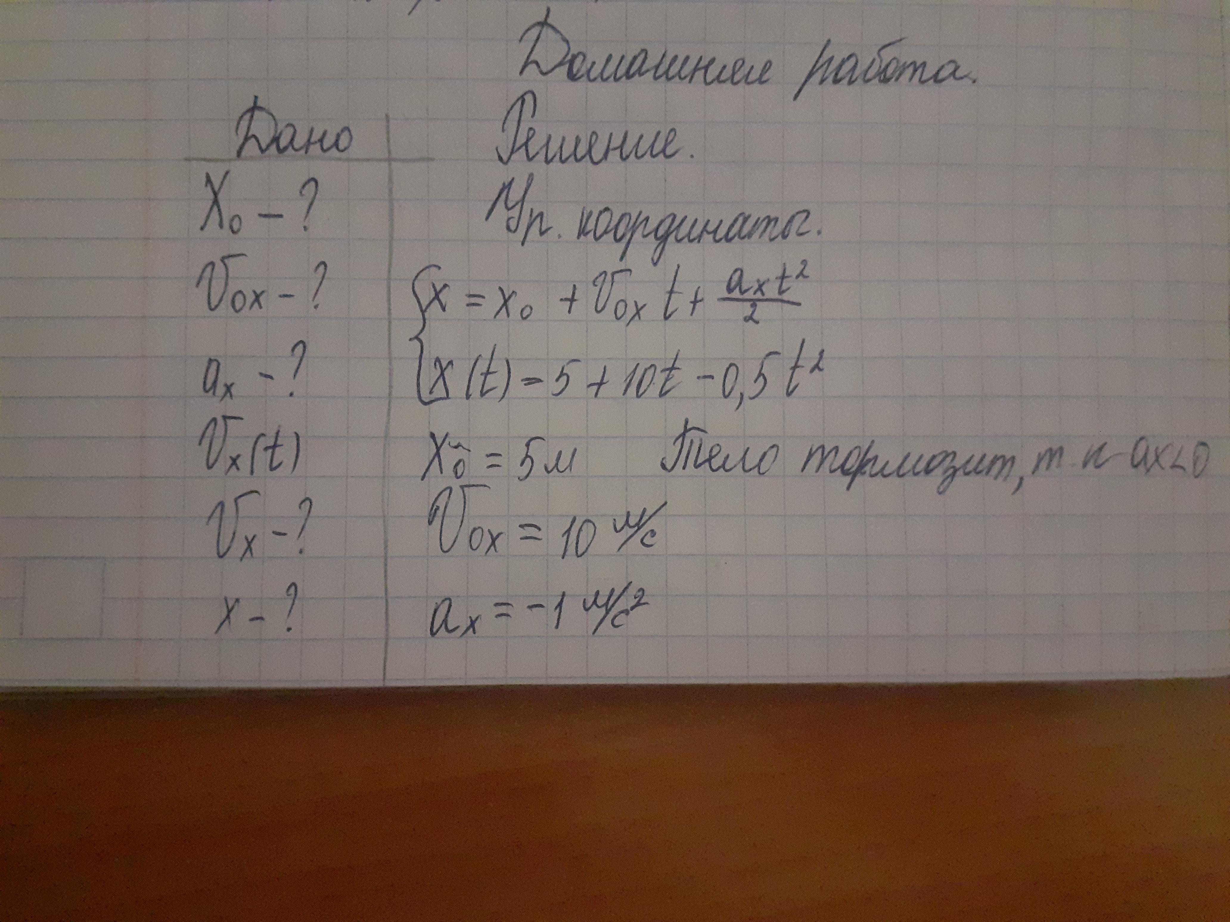 движение тела задано уравнением x=5+10t-0,5t^2 определите: