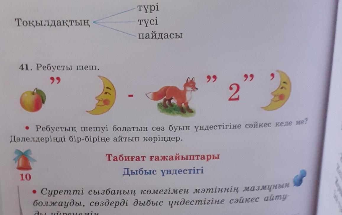 3 слово - түлкі (лиса), убираем последние 2 буквы, ибо как мы видим, то в конце стоит "", получается тү