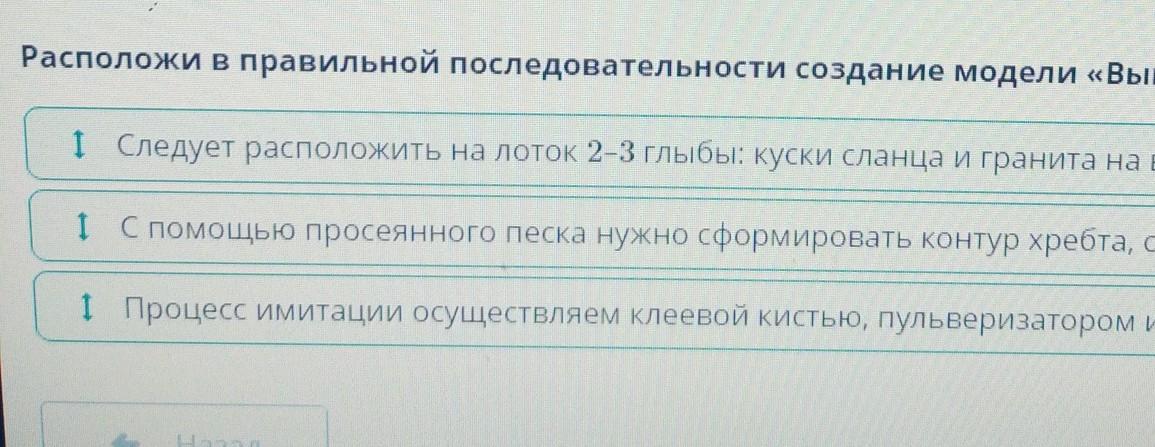 расположи в правильной последовательности создание модели "Выветривание". процесс имитации расположи в правильной последовательности создание модели "Выветривание".