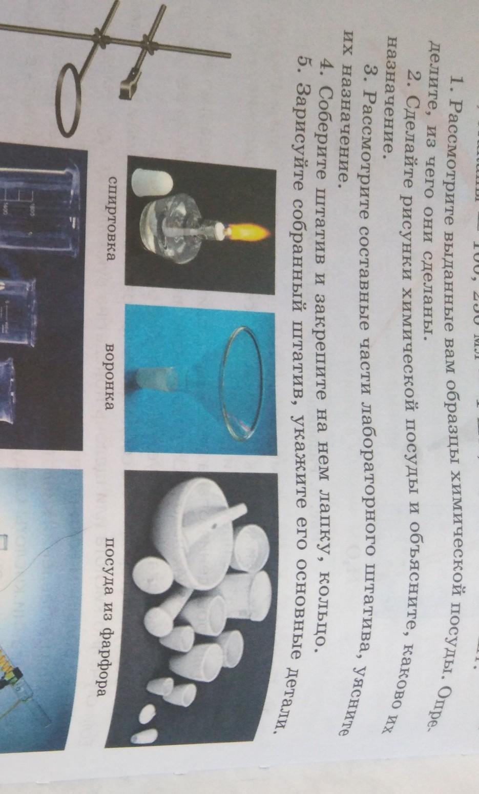 Рассмотрите выданные вам образцы химической посуды. Определите из чего они сделаны