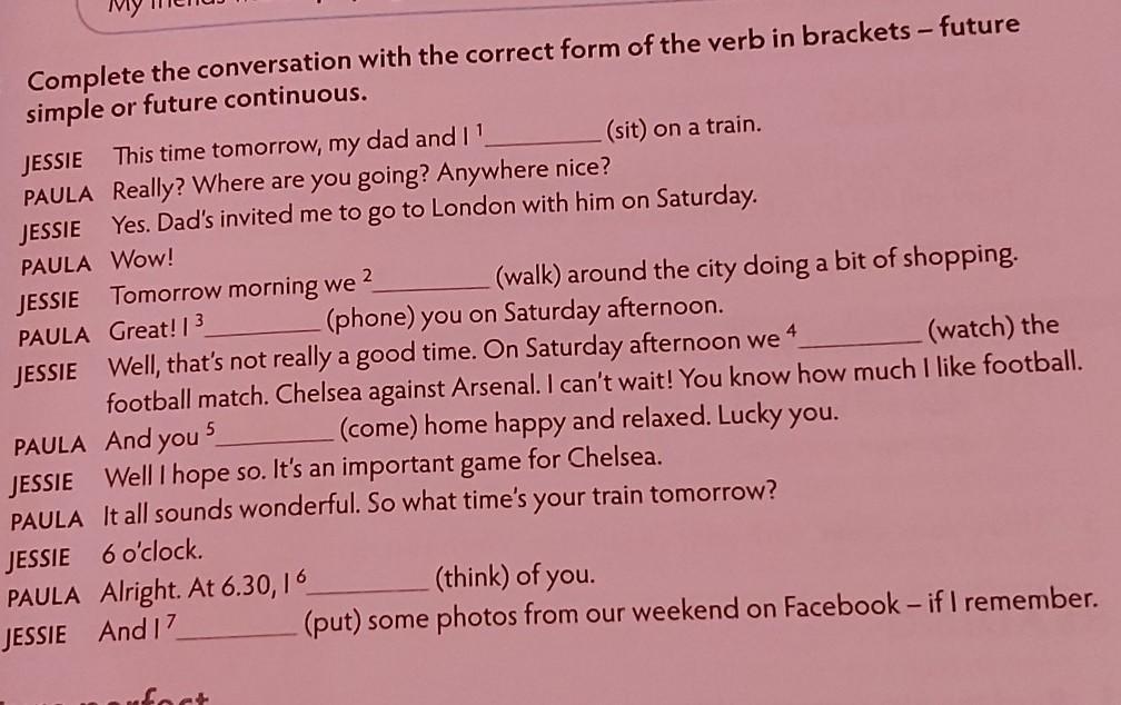 Complete the conversation with the correct form of the verb in brackets - future simple or future continuous. срочноооо!!!!!!