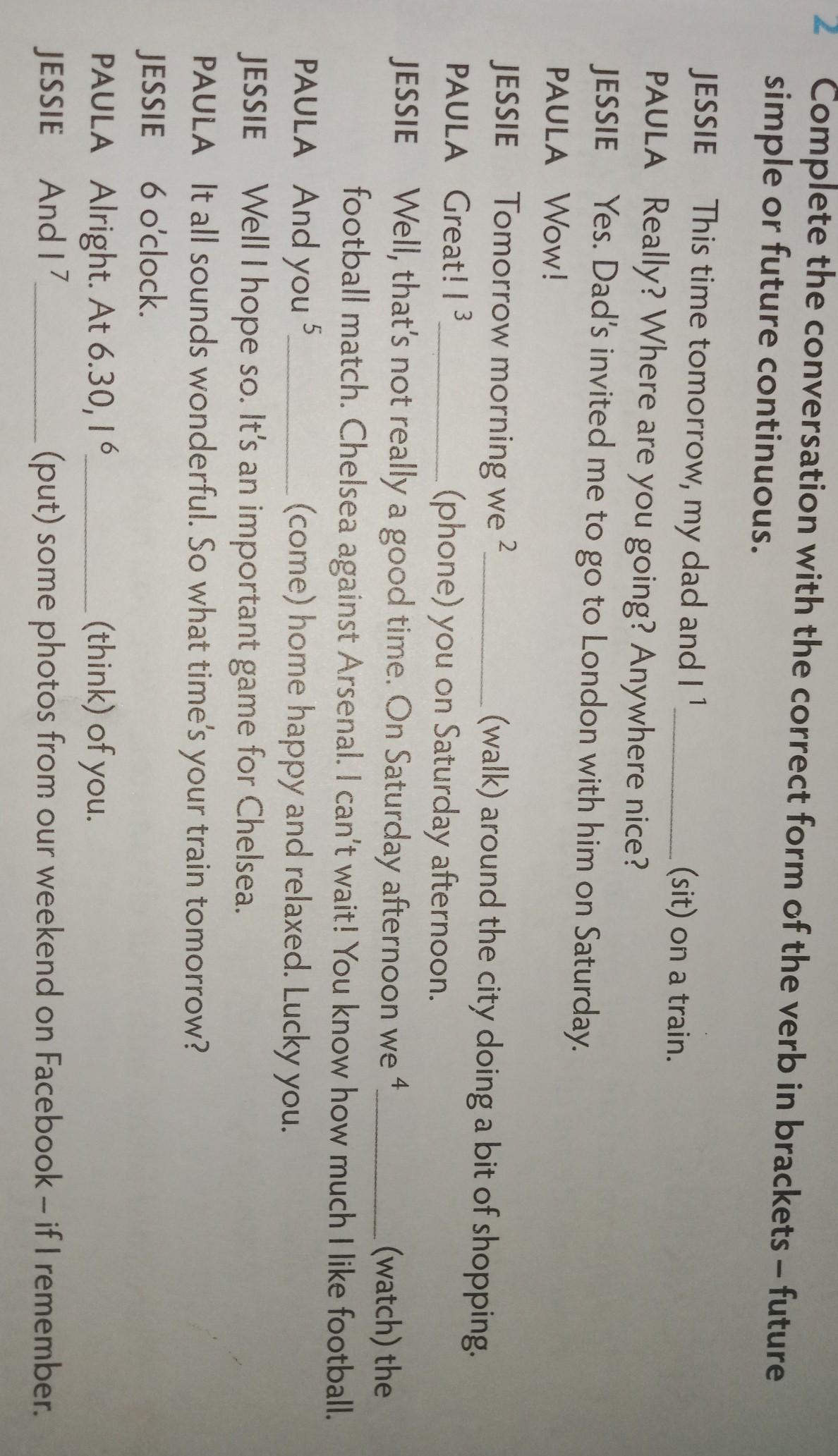 JESSIE This time tomorrow, my dad and I 1 (will be sitting) on a train.