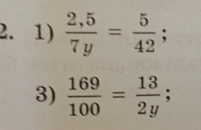 1) умножаешь крест на крест, получится 2,5 • 42 = 35у, отсюда 105 = 35у, у = 3