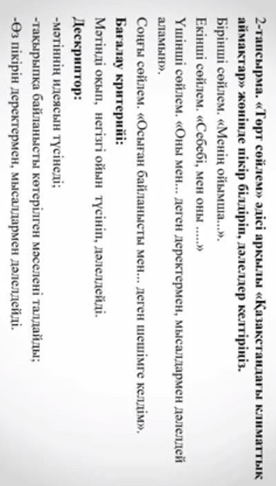 Оны мен орманды дала климаттық белдемі республиканың ылғалы ең мол бөлігі,далалық климаттық белдем республиканың солт-ндегі біраз аймақты қамтиды,шөлейт (шөлейтті дала) климаттық белдем немесе қуаң дала Қазақстанның орта бөлігіндегі жазық өңірді алып жатыр деген деректермен, мысалдармен былай дәлелдей аламын