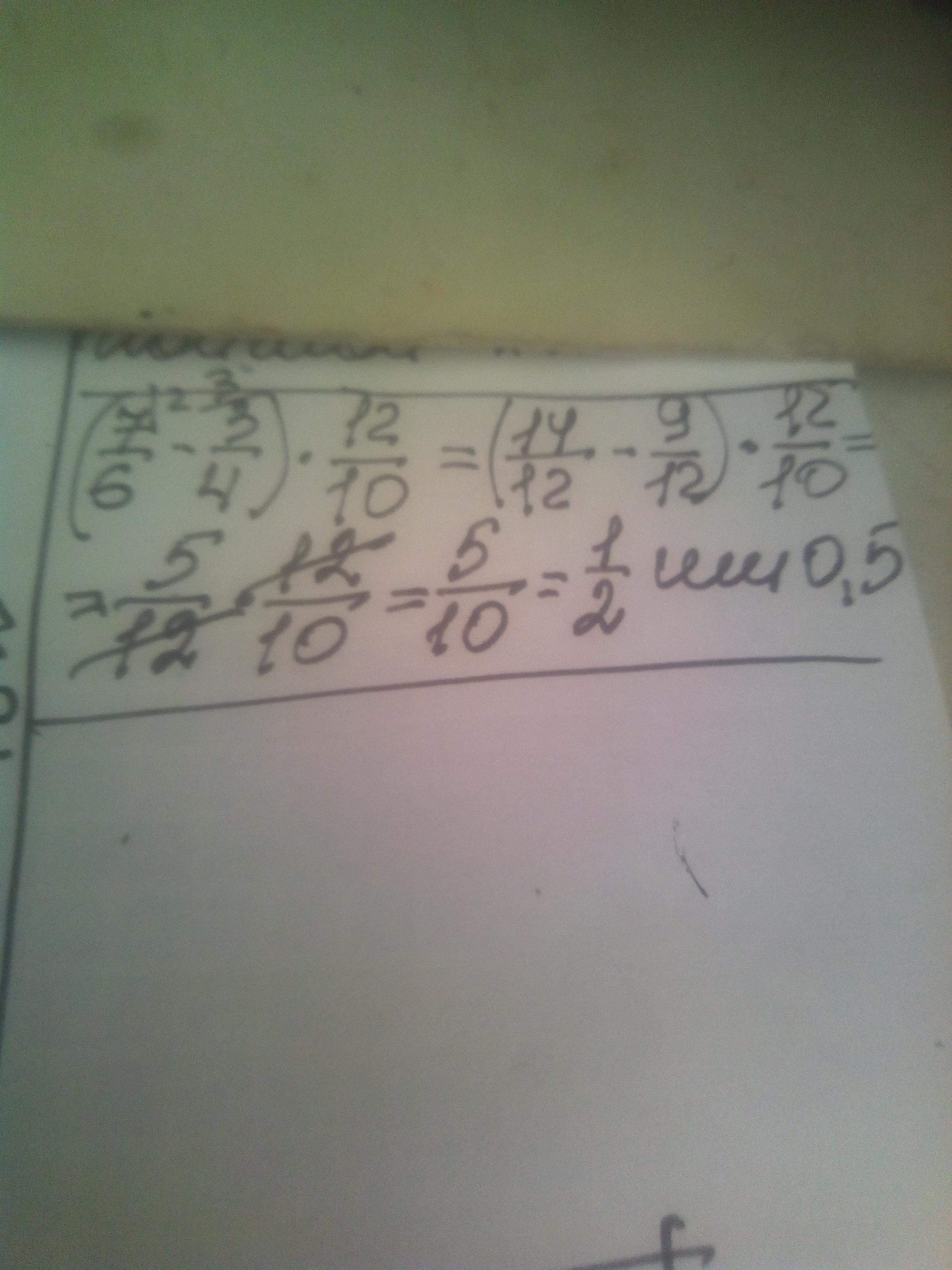 Привести дроби в скобках к общему знаменателю = 12, для этого умножить первую дробь на 2, а вторую на 3. Затем домножить полученную дробь на 12/10