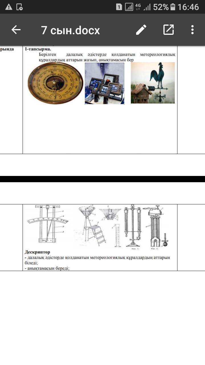 География СРОЧНООО! Берілген далалық əдістерде қолданатын метереологиялық құралдардың аттарын жазып, анықтамасын бер