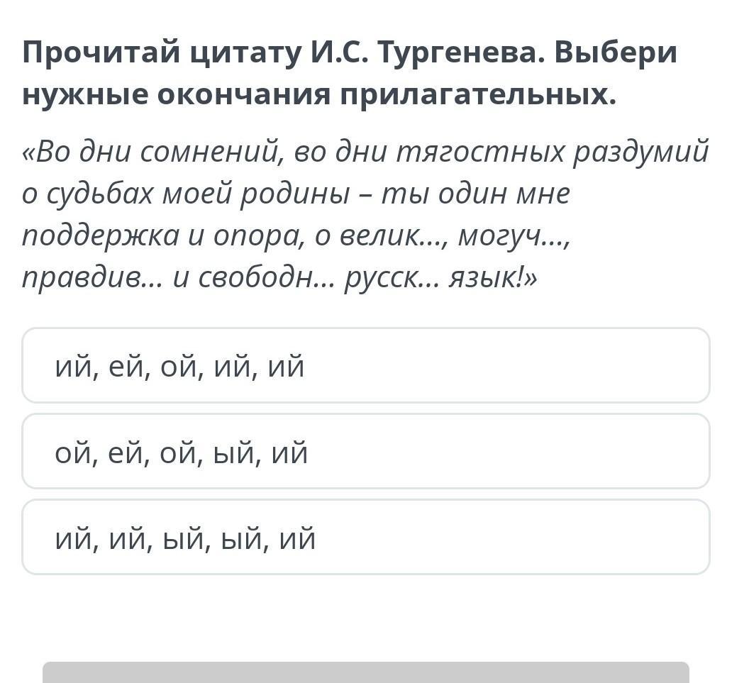 "Во дни сомнений, во дни тягостных раздумий о судьбах моей родины - ты один мне поддержка и опора, о великий, могучий, правдивый и свободный русский язык!"
