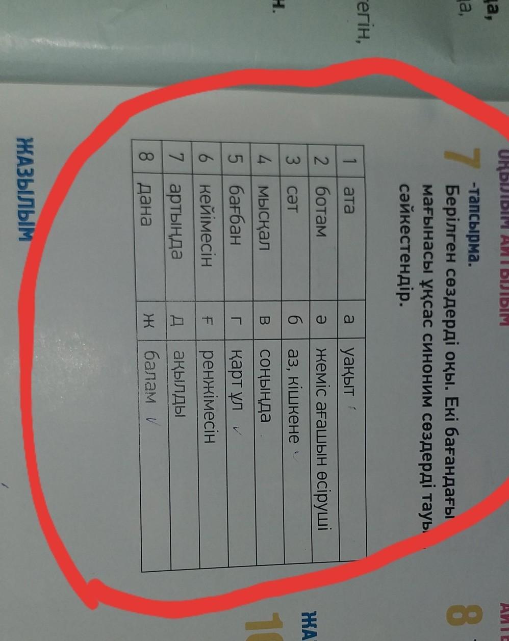 7)артында в) соныңда