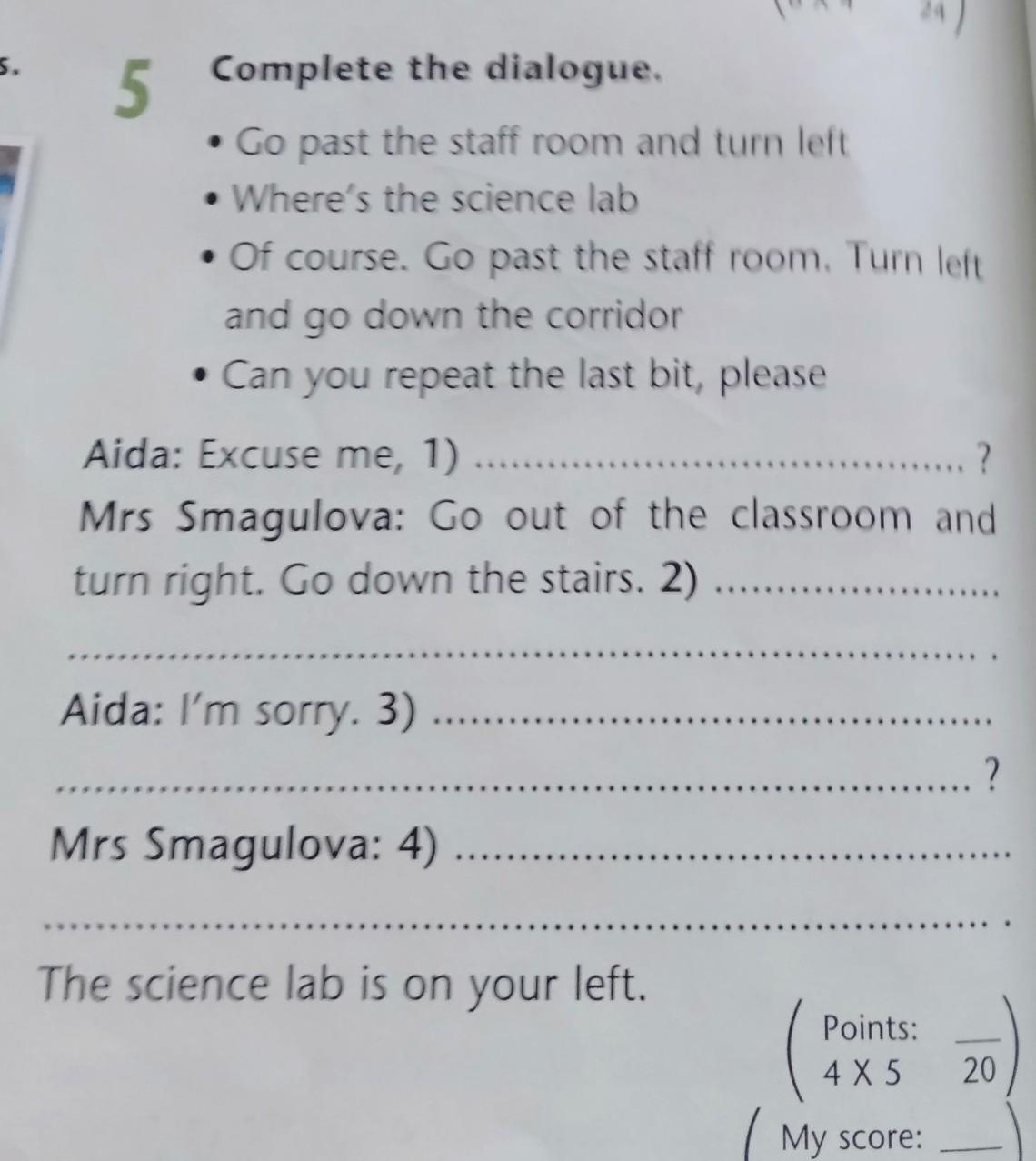 - Of course. Go past the staff room. Turn left and go down the corridor