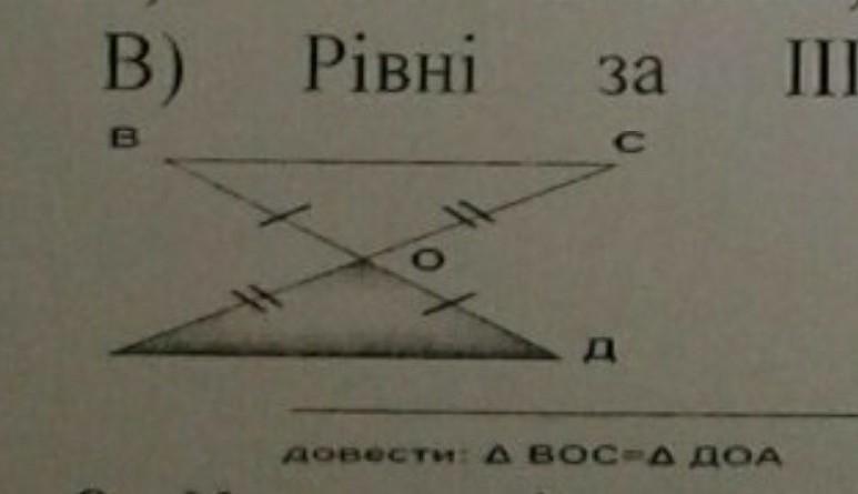 чи рівні трикутники ВОС і ДОА,якшо так то за якою ознакою?
