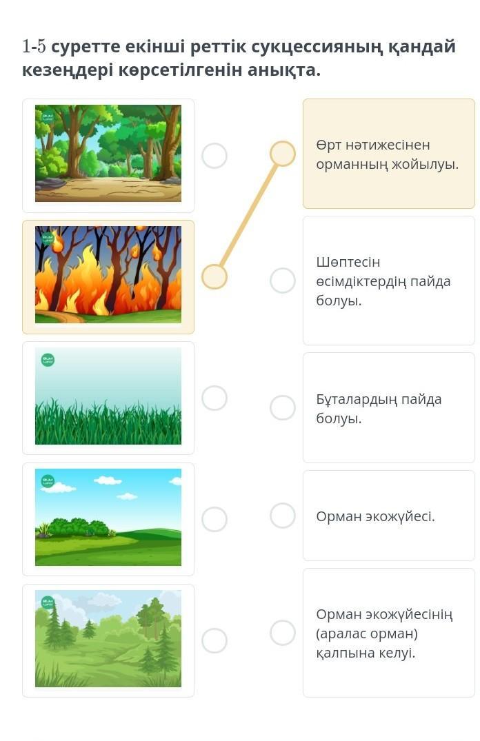 1-5 суретте екінші реттік сукцессияның қандай кезеңдер көрсетілегенін анықта.