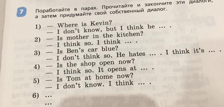 Поработайте в парах. Прочитайте и закончите эти диалоги, к затем придумайте свой собственный диалог.