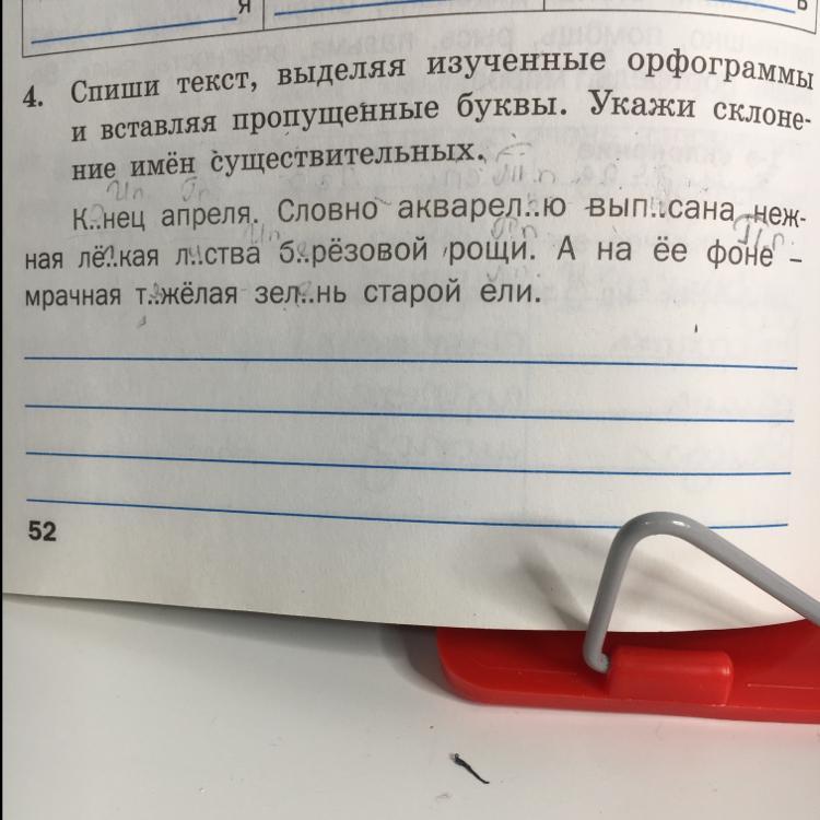 Конец апреля(2скл.).Словно акварелью(3скл) выписана нежная лёгкая лесная листва(1скл) березовой рощи(1скл). А на ёе фоне(2скл)- мрачная тяжелая зелень(3скл) старой ели(3скл).