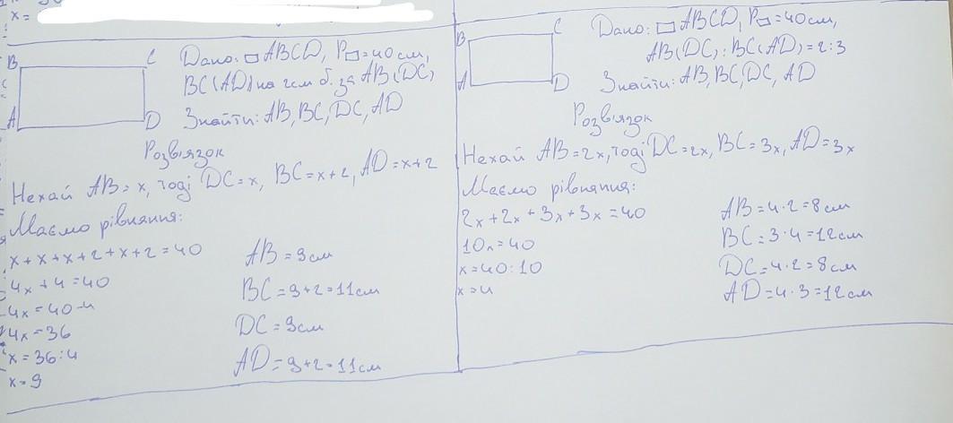 Периметр прямокутника дорівнює 40 см. Знайдіть його