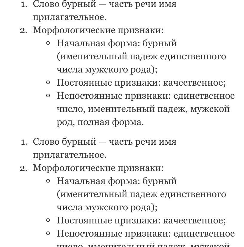 начальная форма: бурный (именительный падеж единственного числа мужского рода);