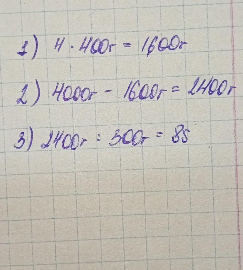 2.) 4000-1600= 2400 (г) - в маленьких банках