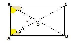 " В прямоугольнике ABCD, где AC и BD диагонали пересикающиеся в точке О, угол AOB=68 градусов. Найти углы ABO, CBO, BAO и DAO. прошу вас, через дано найти решение с чертежом"