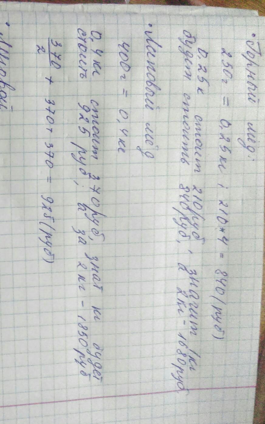 Считаем сколько будет стоить 2кг каждого из вариантов меда. Получается, что 1500 наименьшая цена за 2 кг.