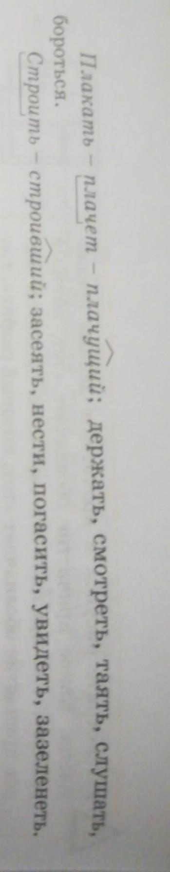 Используя опорную схему, узнайте об образовании действительных причастий. Опираясь на схему, образуйте от данных ниже глаголов действительные причастия. Обозначьте в глаголах и причастиях морфемы по образцу.