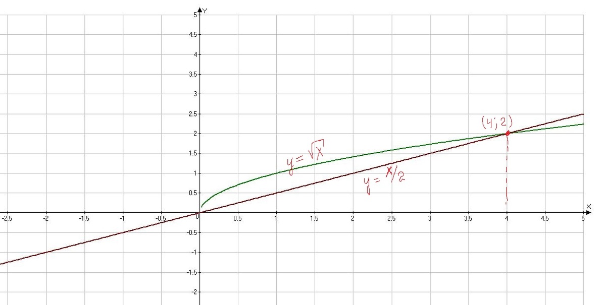 постройте график функции у=корень из х.найдите: а)координаты точек пересечения графика этой функции с прямой х-2у=0
