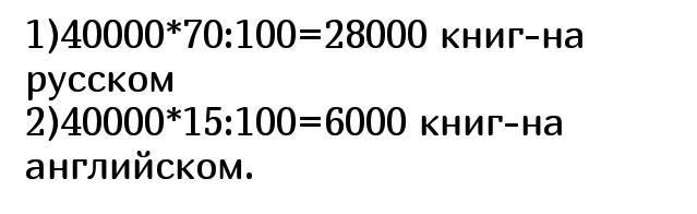 61)40000×0.7=28000- книги на русском ; 40000×0.15=6000 - книги на английском