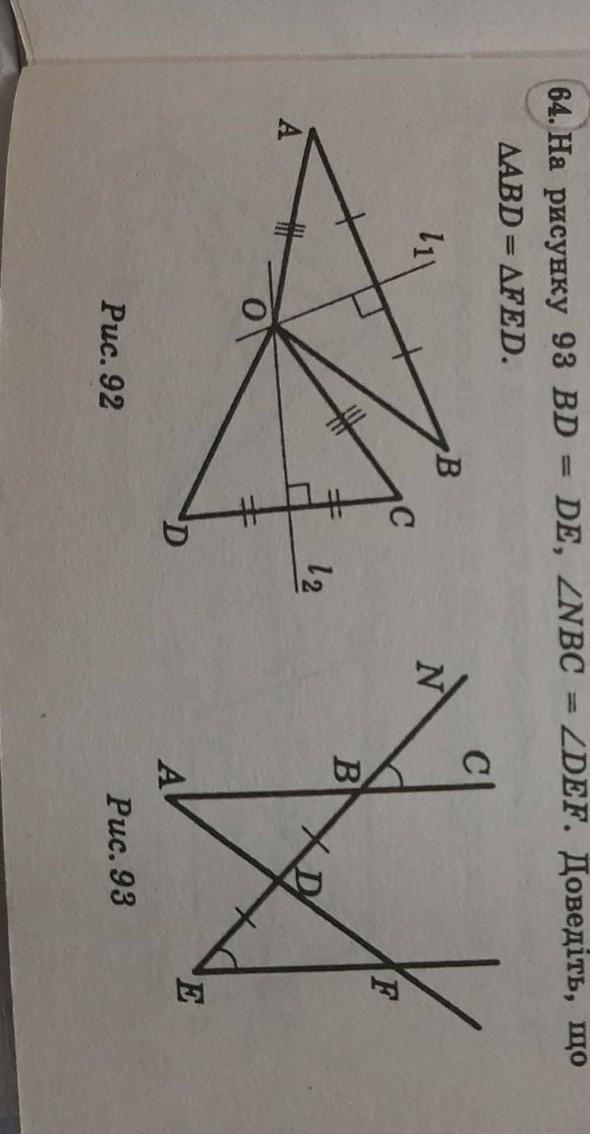 Угол NBC равен углу АВД(т.к вертикальные). Отсюда следует,что треугольники равны по стороне и двум прилежащим к ней углам(ад=де,угол в=углу е)