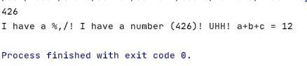 - Console.WriteLine($"I have a %,/! I have a number ({number})! UHH! a+b+c = {a + b + c}");