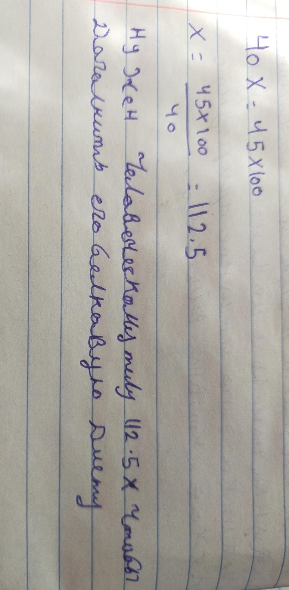 45 г содержат 40% белка Х г. содержит 100% белка,