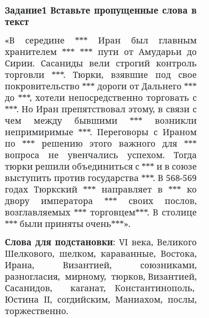 «В середине \/| века Иран был главным хранителем Великого Шёлкового пути от Амударьи до Сирии. Сасаниды вели строгий контроль торговли Византии. Тюрки, взявшие под свое покровительство караванные дороги от Дальнего Востока до Ирана хотели непосредственно торговать с Византией. Нo Иран препятствовал этому, в связи с чем между бывшими союзниками возникли непримиримые разногласия. Переговоры с Ираном по мирному решению этого вопроса не увенчались успехом. Тогда тюрки решили объединиться с Маниахом и в союзе выступить против государства Сасанидов. В 568-569 годах Тюркский каганат направляет в Константинополь ко двору императора Юстина || своих послов. возглавляемых согдийским торговцем шёлка. В столице послы были приняты очень торжественно.»