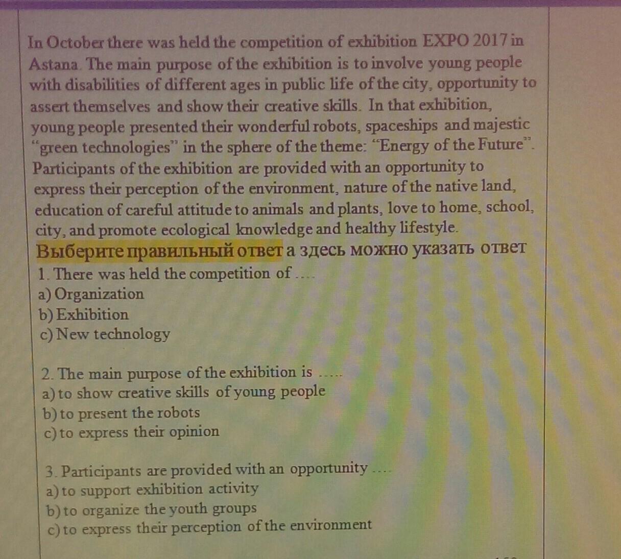 2. a) to show creative skills of young people