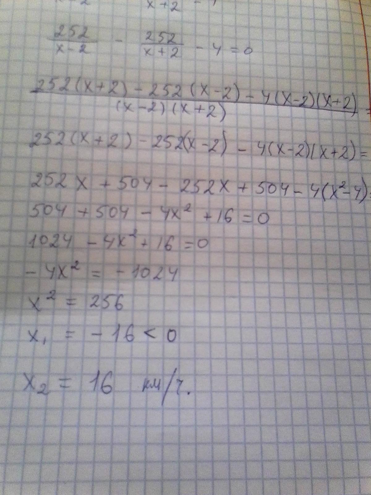 моторная лодка прошла против течения реки 252 км и вернулась в пункт отправления,затратив на обратный путь на 4 часа меньше.Найдите скорость течения реки, если скорость лодки в неподвижной воде если скорость течения равна 2 км/ч.