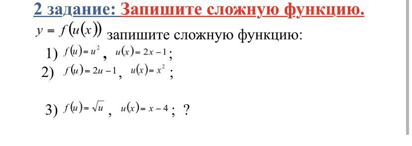 Объяснение: 1) f(x)= (2x-1)² 2)f(x)=2x² - 1 3) f(x) =√(x-4)