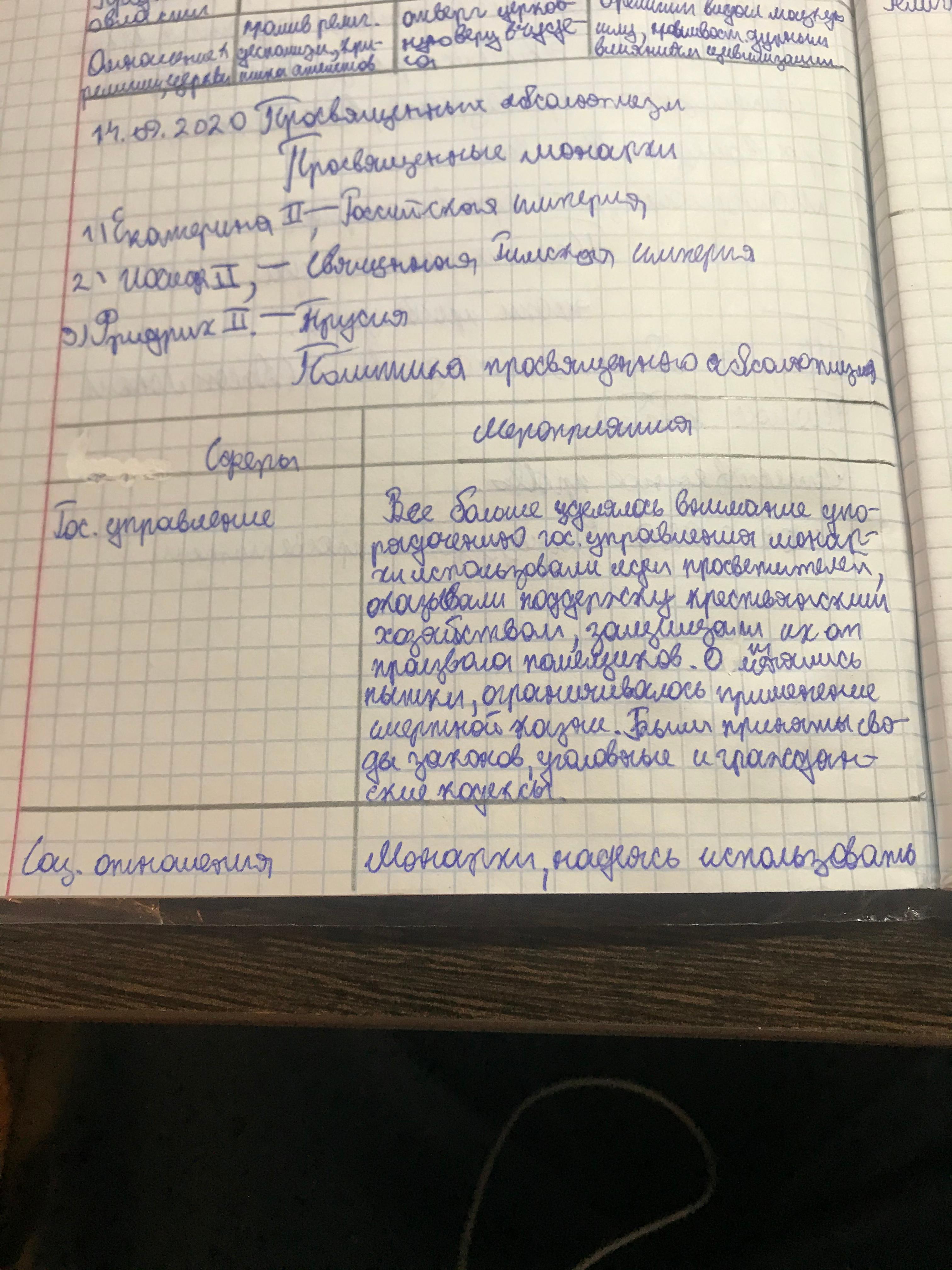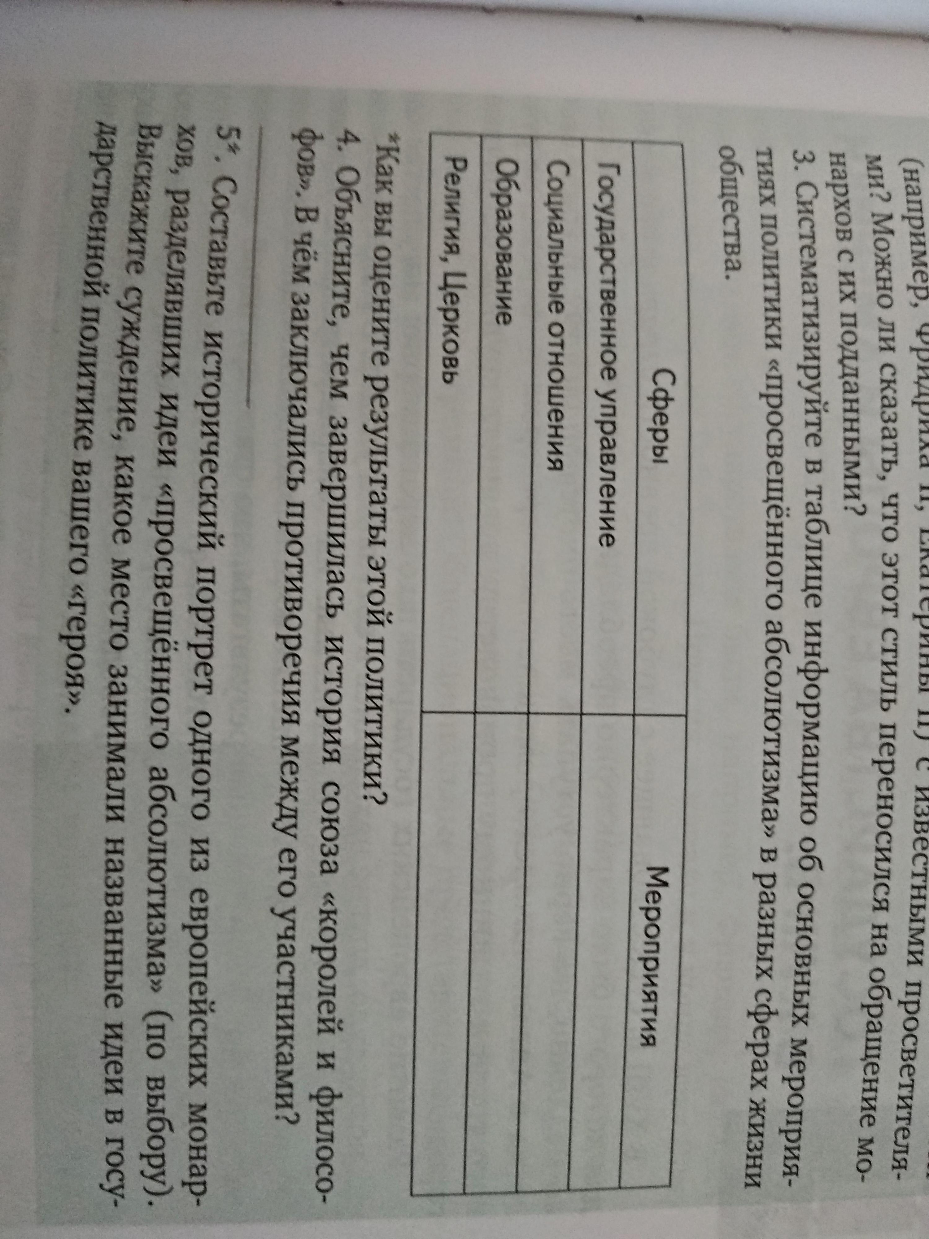 систематизируйте в таблице информацию об основных мероприятиях политики просвещенного абсолютизма в разных сферах жизни общества