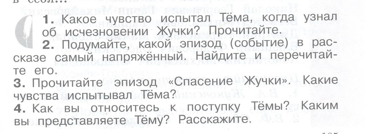 1)Мальчик с ужасом вслушивается в слова няни, и мысли роем теснятся в его голове.У него мелькает масса планов, как спасти Жучку, он переходит от одного невероятного проекта к другому и незаметно для себя засыпает.2)Но подниматься труднее, чем спускаться!)Нужен воздух, нужны силы, а того и другого у Тёмы уже мало. Страх охватывает его, но он подбадривает себя дрожащим от ужаса голосом: – Не надо бояться, не надо бояться!Стыдно боятьсяТрусы только боятся 3)Но теперь, когда дело сделано, силы быстро оставляют его, и он падает в обморок. 4)тема хороший мальчик он сделал хороший поступок