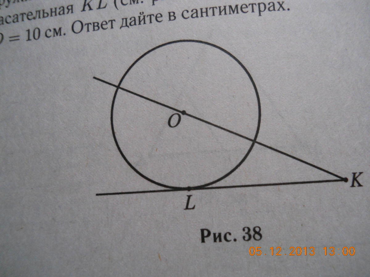 ПОМОГИТЕ!!К окружности с центром в точке О и радиусом 6 см проведены секущая KO и касательная KL. Найдите отрезок касательной KL, если KO=10 см.Ответ в сантиметрах и с решением.Чертёд ниже