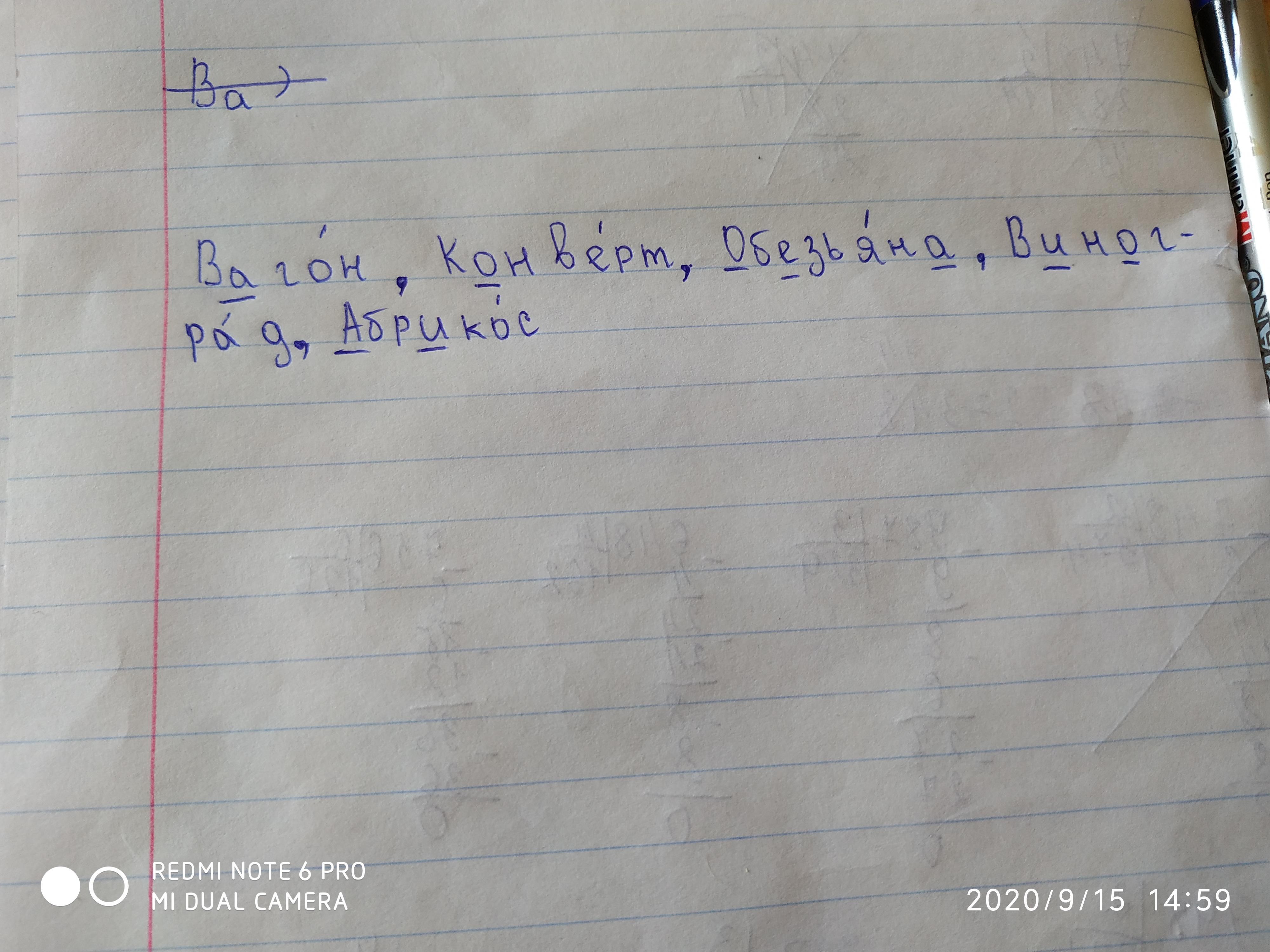 Подчеркни безударные гласные. Вагон , Конверт , Обезьяна, Виноград, Абрикос