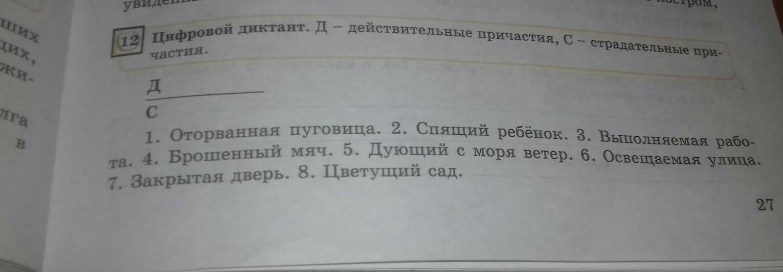 12 цифровой диктант. Д- действительные причастия, С - страдате
