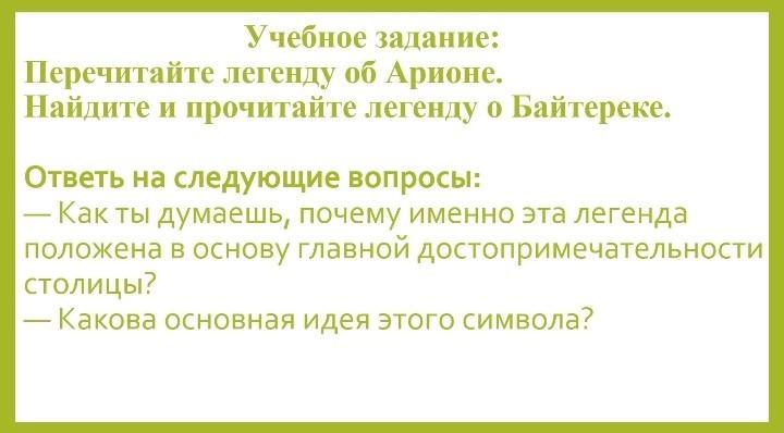 Ответ:1)Для казахстанцев Байтерек - символ молодого, растущего государства. 2) Байтерек символизирует собой государство, сохранившееся свои корни, имеющее прочную опору и устремленность к будущему процветанию.