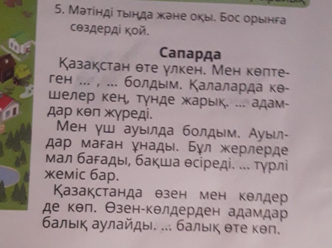 Қазақстан өте үлкен.Мен көптеген қалалармен,ауылдарда болдым.Қалаларда көшелер кең,түнде жарық.Жақсы адамдар көп жүреді.