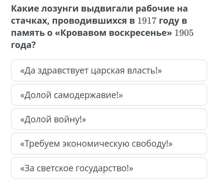 какие лозунги выдвигали рабочие на стачках, проводившихся в 1917 году в память о "Кровавом воскресеньи"