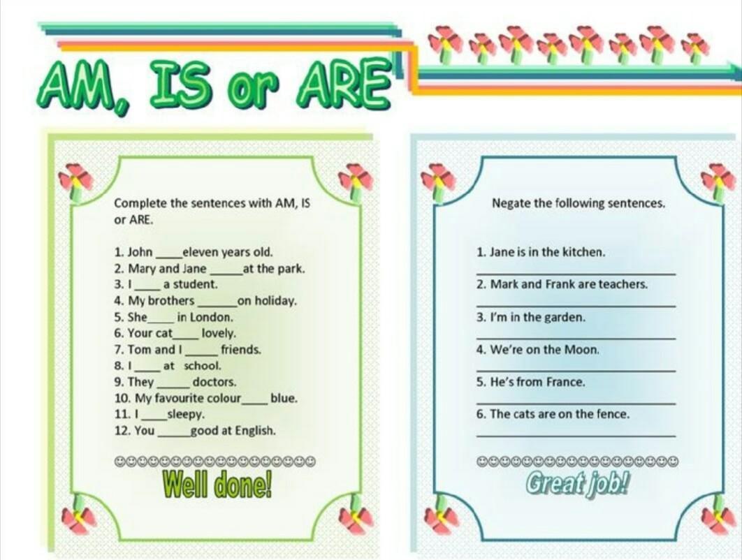 1) is;2)are;3)am;4)are;5)is;6)is7)are;8)am;9)are;10)is;11)am;12) you;след столбик:1)Jane isn’t in the kitchen.2)Mark and Frank are not teachers.3) I am not in the garden.4)We are not in the moon.5)He isn’t from France.6)The cats aren’t on the fence.